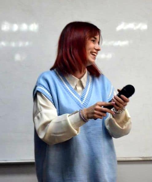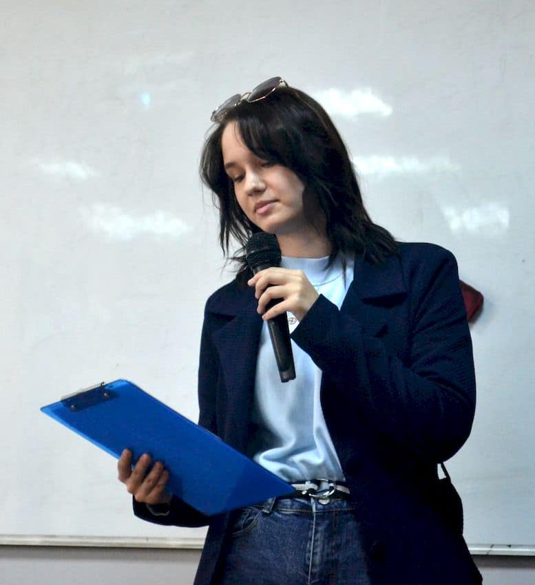 Затем слово было предоставлено кандидатам на пост председателя Студенческого совета — Арине Боенко и Анастасии Калинкиной. Арина представила свои планы и идеи по улучшению работы совета, а Анастасия рассказала о своих успехах на предыдущем посту.