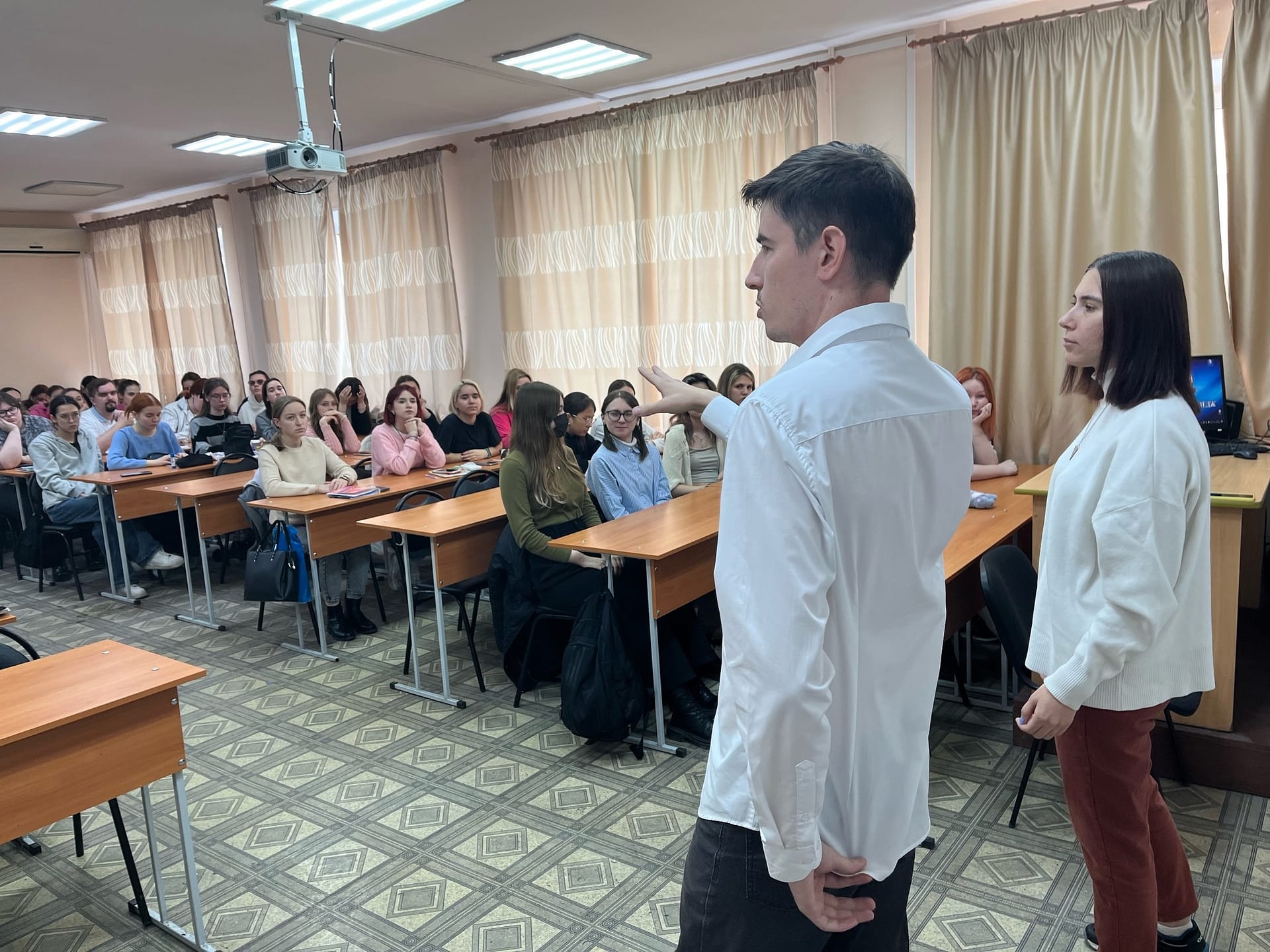 22 октября психологи, гештальт-терапевты, основатели психологической студии «Квадрат» Сунагатова Ольга и Пьячёв Григорий провели лекцию для студентов специальности «Преподавание в начальных классах».