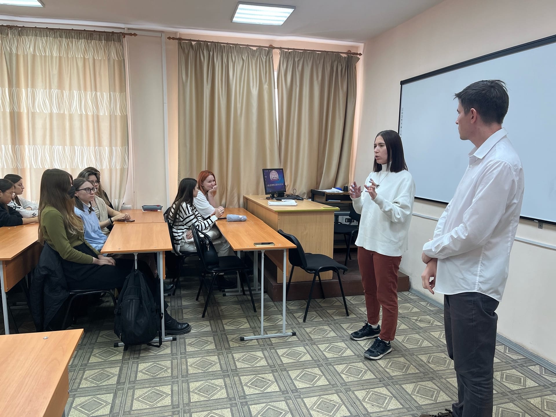 Со студентами поговорили о подводных камнях работы учителем с психологической точки зрения, о проблемах детско-родительских отношений, а также о способах контроля и оценки своих действий. Встреча особенна важна для студентов данной специальности, ведь одна из задач учителя – передать знания и опыт своим ученикам, помочь им раскрыть свой потенциал и стать успешными людьми.